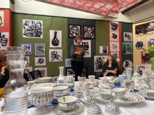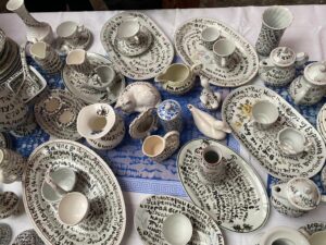 The random tableware which I inscribed with the full text of the story was a central piece for the installation in my studio in April 2023.